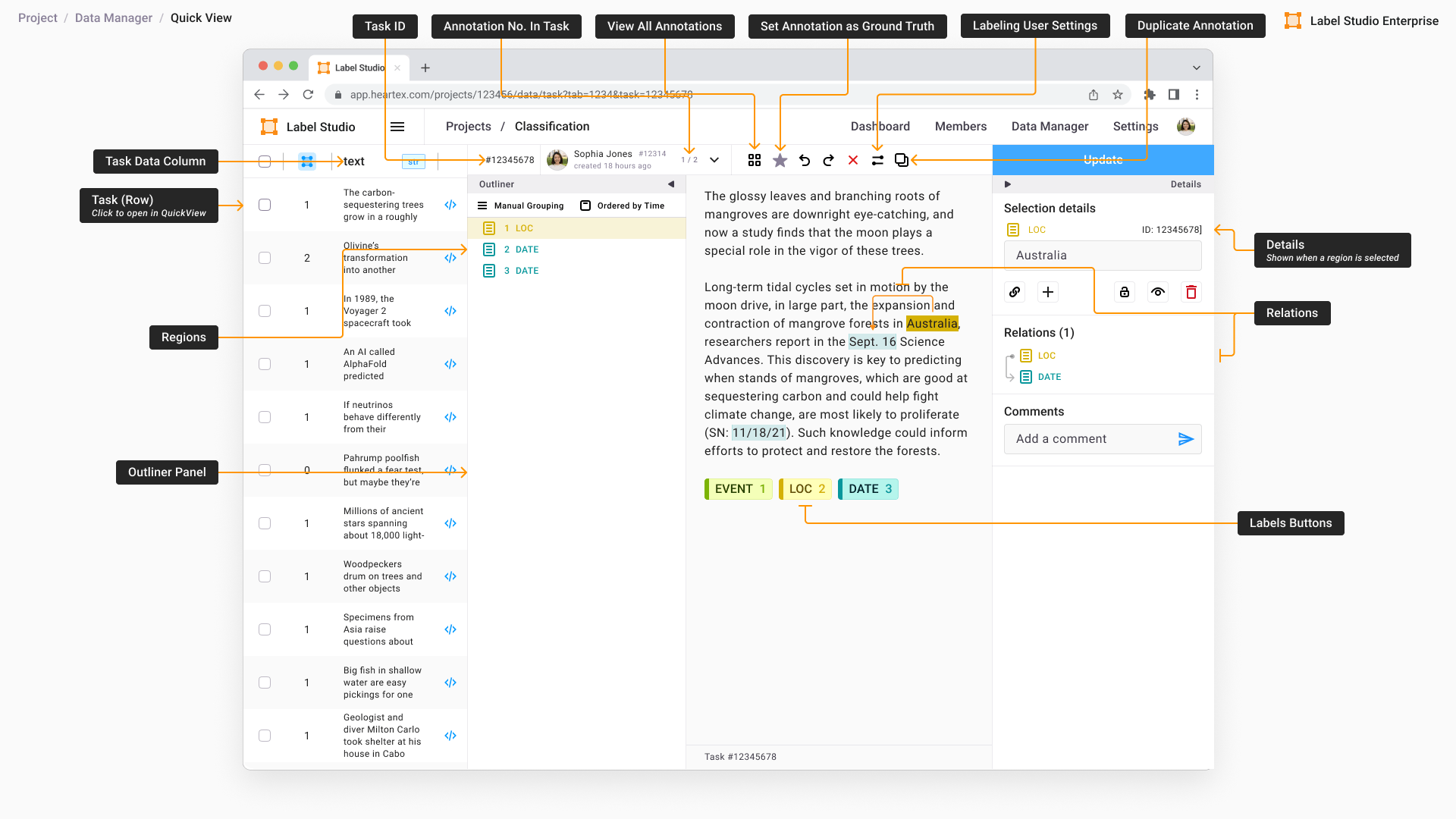 7. Review the annotated tasks. Only available in Label Studio Enterprise Edition.